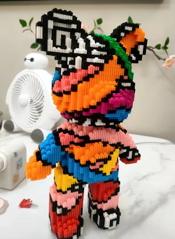 Une fois bien assemblé, le nounours est très solide grâce à la qualité des briques qui s’emboîtent parfaitement — idéal pour la déco.